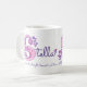 Letra tirada mão decorada com seu próprio começo conhecido com a caneca do significado de S e de nome. O capital bonito S do coração e da flor doodled o design tipográfico que caracteriza corações e flores e a estrela de brilho de Stella A das palavras, brilhante, honesto e verdadeiro no rosa e no roxo. Arte e design originais do © por Sarah Trett. www.sarahtrett.com para www.mylittleeden.com no zazzle