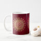 O amor delicado é uma pintura desenhado mão da mandala. Caracteriza uma mandala intrincada do ouro em um fundo vermelho multi-hued. O design é repetido em torno da caneca assim que pode ser apreciado de todo o ângulo.