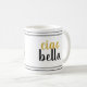 Esta caneca limpa do Ciao Bella do branco é esboçada com detalhes lindos do ouro do preto e das características.