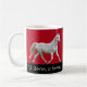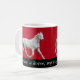 Um cavalo branco prancing em torno desta caneca festiva. Personalize mudando as citações de Shakespeare e/ou a cor do fundo.