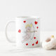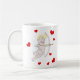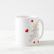 Caneca de café com ilustração dos desenhos animados do Cupido com os corações que disparam em uma seta