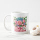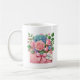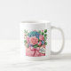 Esta clássica caneca de café branca é mostrada com uma adorável estampa floral do Dia das Mães.