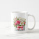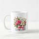 Esta clássica caneca de café branca é mostrada com uma encantadora estampa floral do Dia das Mães.