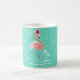 O design à moda com um toque retro caracterizando os flamingos cor-de-rosa festivos que vestem os chapéus, estrelas vermelhas e as palmeiras do papai noel decorados com baubles ajustou-se contra um fundo do aqua. Um design customizável para que você personalize com seus próprios texto, imagens e ideias. Uma imagem digital original da arte criou pelo chique subtil.
