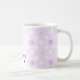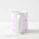 Características deste design um gatinho branco & marrom bonito em uma luz - fundo roxo com bolinhas brancas, corações roxos da jóia, e luas roxas.