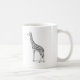 Uma caneca com uma imagem de um girafa e no verso diz a "posse sua elevação principal".
