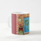 Uma caneca temático do Natal que caracteriza uma aguarela original intitulou "nossa casa" por Debbie Scofield. O olhar morno das grinaldas na porta, o trenó antigo e o arco vermelho brilhante estão esperando o café muito quente, chocolate quente ou estão consolando o chá.
