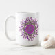 O budismo & a ioga inspiraram o design da caneca com símbolo do OM (aum) no damasco da mandala impresso em um lado e o Namaste sânscrito no outro lado.