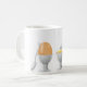 Um ovo cozido é yum e mostras deste design o ovo cozido perfeito. É dois ovos cozidos de lado a lado em uns copos de ovo. Primeiro é o ovo completo e segundo estêve aberto rachado para mostrar o interior. Este design do ovo cozido olha grande nesta caneca. Aperfeiçoe para o senhor mesmo ou como um presente