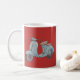 Uma pintura original da aguarela e da tinta de um patinete em um fundo vermelho.