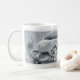 As características de design da caneca uma descrição gráfica dos peixes-boi tirados pelo alvorecer Witherington do artista.