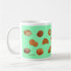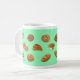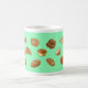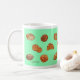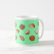 Caneca com design alegre do desenho do pão. Luz - fundo verde. Esta caneca de café com os 17 desenhos originais diferentes do pão e da pastelaria iluminará suas manhã e tarde. Faz um grande presente para o senhor mesmo ou outro para toda a ocasião.