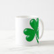 Caneca branca com uma ilustração de um trevo, ou do trevo de salto, símbolo de Ireland e do dia de St Patrick (uma legenda diz que o santo a usou para explicar a trindade santamente). Vários tamanhos e estilos a escolher de.