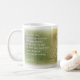 Esta é uma caneca com um grande verso da bíblia e um design elegante de uma vinha.