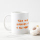 Caneca legal para um viciado do esqui. Em um lado uma imagem dinâmica, roxa de um esquiador perito, no outro texto alaranjado do lado dizendo "esta caneca pertence a um viciado do esqui"