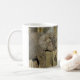 Elefantes africanos em amar a caneca de Enbrace. Imagem panorâmico que bate completamente em torno da caneca. O tamanho personalizado às 11 onças pequena ou as grande 15 onças como mostradas aqui (e a imagem realmente olha muito mais agradável na caneca maior), ou o tipo da mudança de caneca que usa Zazzle personalizam opções. Foto com direitos de autor original pela fotografia do Deb Simon.