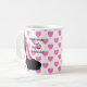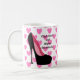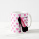 Se você mantem seus saltos e seus padrões altos, esta caneca é para você. Corações cor-de-rosa no fundo. Disponível em uma variedade de estilos da caneca.