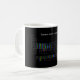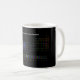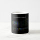 Esta caneca caracteriza uma mesa periódica, com uma torção: em vez dos números atômicos e dos símbolos, mostrados são os espectros de emissão para cada elemento.