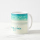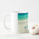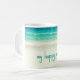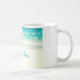 Esta caneca da praia caracteriza uma fotografia do oceano azul de acalmação com as ondas delicadas que rolam na areia branca.