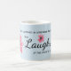 Esta caneca azul bonito com as flores cor-de-rosa lunáticas caracteriza você vai escritura da menina do livro dos provérbio: "É vestida na força e na dignidade. Ri dos dias para vir." Personalize com seu nome, ou saa que vazio do campo se você prefere. Excelente para alguma mulher forte em sua vida, se mãe, esposa, filha ou amigo.