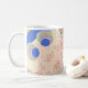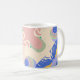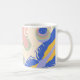 Brilhe seu dia com esta caneca de café artística com formas abstrato ousadas em verde, azul, laranja e branco — uma verdadeira peça de declaração para sua cozinha.