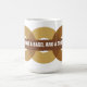 Três bagels gráficos grandes são descritos nesta caneca. Overprint com uma leve transparência e um painel com uma mensagem que funciona através dos furos. O ouro colore bagels simulados com os pontos adicionados para adicionar a sugestão de um bagel da semente de sal e de papoila. Excelente como um artigo relativo à promoção. Disponível com produtos de harmonização.