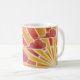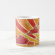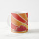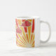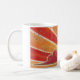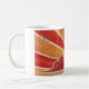 Um sol dourado e laranja se põe e o vento sopra nuvens vermelhas e rosa através do céu. Mug com um design personalizável dourado, laranja, vermelho, rosa e branco para você personalizar com seu próprio texto, imagens e ideias. Disponível em todas as opções de estilo. Um lápis de cor original e desenho de tinta metálica de Jess Perry.