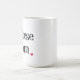 Caneca branca com rotulação preta e um coração vermelho brilhante na extremidade!