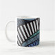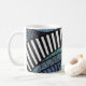 Esta caneca caracteriza uma parte criada original para apoiar da "a iniciativa da hora terra" guardarada através do globo. É dinâmica e harmoniosa, sugestiva do movimento e das marés do mar. Rendido Stunningly em várias máscaras da turquesa e ciano, você não encontrará este saco em qualquer outro lugar mas aqui. Esta parte está igualmente disponível como um impressão.
