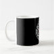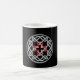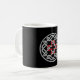 Uma caneca clássica com um design de nó celta com uma cruz quadrada vermelha no centro.