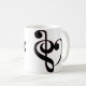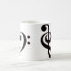 Os Clefs musicais agridem características que um coração formou por um clef de triplo e um clef baixo no preto esboçou no vermelho.