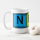 Tenha a caneca de café a mais nerdiest onde quer que você vai com o "nerdy" soletrado para fora com elementos da mesa periódica.