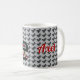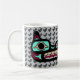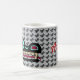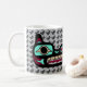 A cabeça de um lobo corajoso domina um lado desta caneca quando seu texto personalizado estiver no outro. Este copo é projetado para o texto 2 ser uma sombra de trabalhos artísticos originais do texto 1. pelo artista nativo do Alasca S. Coxwell