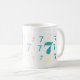 Esta caneca foi especificamente projetada para aqueles cujo número de nascimento é 7. Seu número de nascimento é 7 se você fosse nascer no 7, 16 ou 25 de qualquer mês. As cores são as das 7 vibrações - verde-marinho, amarelo-claro, aqua e rosa.