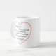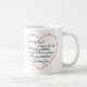 Esta caneca atrativa caracteriza uma versão curta dos Corinthians que 1 o 13:4 "amor é paciente, amor é amável…". Esta caneca original caracteriza as palavras do verso em uma forma do coração além do que as palavras dentro do coração.