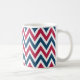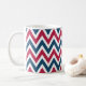 Um padrão de chevron vermelho, branco e azul decora esta caneca de café patriótica. O design é de arte original.