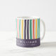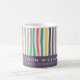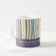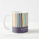 Brilhe sua manhã com esta caneca listrada colorida. Apresentando listras ondulantes e lúcidas em verde, vermelho, amarelo, roxo e branco, este design vibrante adiciona um toque alegre ao seu café ou chá. A seção inferior permite a personalização — adicione seu nome, profissão ou uma frase inspiradora para torná-la realmente única. Perfeito como presente pensativo para colegas, amigos, professores, ou só para você.