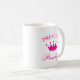 Caneca personalizada da princesa com coroa rosa e nome. Ideia de presente de aniversário fofo para mulheres e meninas. Texto com letra elegante e símbolo de coroa. As cores podem ser alteradas.