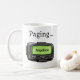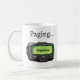 Uma caneca de pager personalizada divertida para qualquer pessoa que vive de alertas, turnos de chamada e estar acessível. A ilustração do pager preto e cinza apresenta uma tela verde brilhante onde o nome pode ser personalizado. Um presente leve para equipes de saúde, funcionários de imagem médica, residentes, estudantes e qualquer pessoa de plantão em outros campos também. Acima do pager, diz “Paginando…”, e a tela pode ser personalizada com um nome.