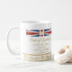 Comemore o nascimento do membro o mais novo da família real, príncipe de Cambridge, com esta caneca decorada com uma fita vermelha, branca e azul elegante com falso os enfeites de cristal do coração e do ouro. Esta caneca comemorativa é projetada com a data de nascimento da princesa pequena, o peso, e o tempo do nascimento.