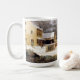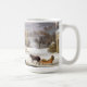 A pintura referente à cultura norte-americana bonita das belas artes do vintage, de um dia de inverno nevado com uma cidade de país, bois e um passeio do cavalo e do trenó, está nesta caneca. A imagem é dominio público devido aos direitos reservados expirados.