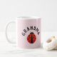 Uma caneca rosa com joaninha para a avó. Maneira divertida de anunciar sua gravidez.