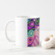 Querida Groovy! Um gato listrado rosa com bigodes giratórios e um fundo com um arco-íris psíquico. Mug com um design personalizável cor-de-rosa, azul, verde, roxo e amarelo para você personalizar com seu próprio texto, imagens e ideias. Disponível em todas as opções de estilo. Um desenho de lápis colorido digitalmente melhorado por Jess Perry.