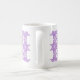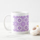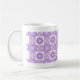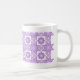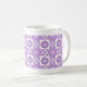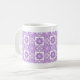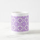 Teste padrão roxo da edredão envolvido em torno da caneca de café