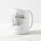 Uma caneca que caracteriza trabalhos artísticos originais do lago Salmon, Califórnia pelo artista Jack Ely.