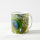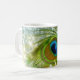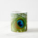 Caneca glamoroso do feriado com a pena bonita do pavão, ouropel de prata brilhante e luzes sparkling