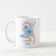 Caneca azul lunática do pássaro com a afirmação positiva de benevolência surpreendente
