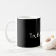 Black Mug, com texto, "Verdade Importa." com todas as opções em preto disponíveis. Defenda o que você acredita! Defenda a Verdade!