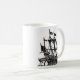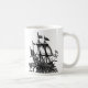 Imagem de uma ilustração velha de um navio de navigação com umas citações do "capitão novo clássico Sangue" no outro lado.