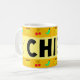 Esta é uma caneca ocasional projetada para chefes & gerentes com um sentido de humor. Diz o "chefe" na caneca como uma referência à cabeça de um tribo. Há lanças ao lado da palavra. Acima e abaixo dela são as frutas e legumes tropicais deliciosas. Para este design eu usei cores brilhantes tais como amarelo e a laranja para fazer a caneca estar para fora no lugar de trabalho.